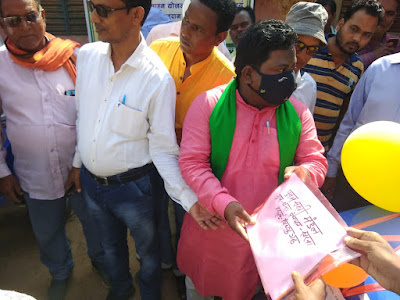 स्वम् सहायता समूह से आग्रह है, कि आप इन कृषि यंत्रो का अपनी खेती एवं कृषि यंत्र को दूसरे के खेतों में काम करवाकर जीविकोपार्जन किया जा सकता है हमारी सखी मंडल की माताएं एवं बहने अपने -आप को आत्मनिर्भरता की ओर अपना कदम बढ़ा सकती है ।कार्यक्रम के दौरान प्रखंड नजारत से विजय कुमार ने वृद्धा पेंसन प्रमाणपत्र श्री पटेल के हाथों वृद्ध महिलाओ एवं पुरुषो को दिया गया।