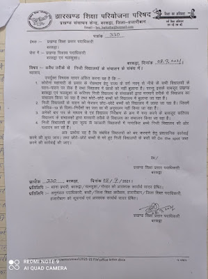 बरकट्ठा:- प्रखंड क्षेत्र के निजी विद्यालयों के अवैध तरीके से संचालन को लेकर प्रखंड शिक्षा प्रसार पदाधिकारी बरकट्ठा ने दिनांक 8/9/ 21 पत्रांक 330 के माध्यम से बीडीओ बरकट्ठा व चलकुसा को अवगत कराया है। जिसमें बरकट्ठा बीईईओ अशोक कुमार पाल ने कहा है कि विभागीय आदेशानुसार वर्ग नवम से नीचे के सभी प्रकार के विद्यालयों के पठन पाठन पर रोक है तथा विद्यालय में छात्रों को नहीं बुलाना है।