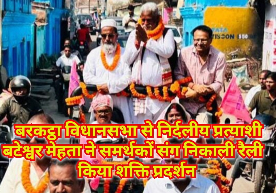 बरकट्ठा विधानसभा से निर्दलीय प्रत्याशी बटेश्वर मेहता ने समर्थकों संग निकाली रैली, किया शक्ति प्रदर्शन।