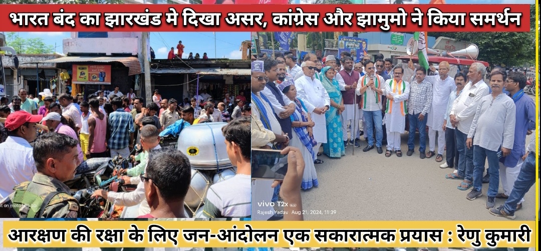 हजारीबाग; भारत बंद का झारखंड मे दिखा असर, कांग्रेस और झामुमो ने किया समर्थन।