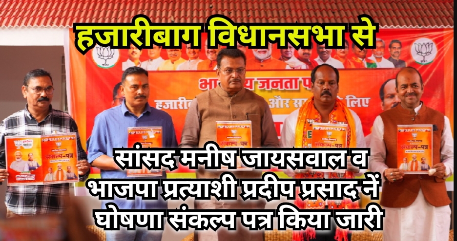 सांसद मनीष जायसवाल व भाजपा प्रत्याशी प्रदीप प्रसाद नें घोषणा संकल्प पत्र किया जारी