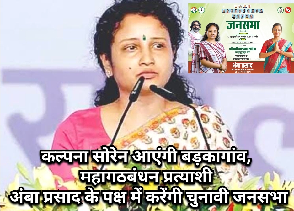 कल्पना सोरेन आज आएंगी बड़कागांव, महागठबंधन प्रत्याशी अंबा प्रसाद के पक्ष में करेंगी चुनावी जनसभा