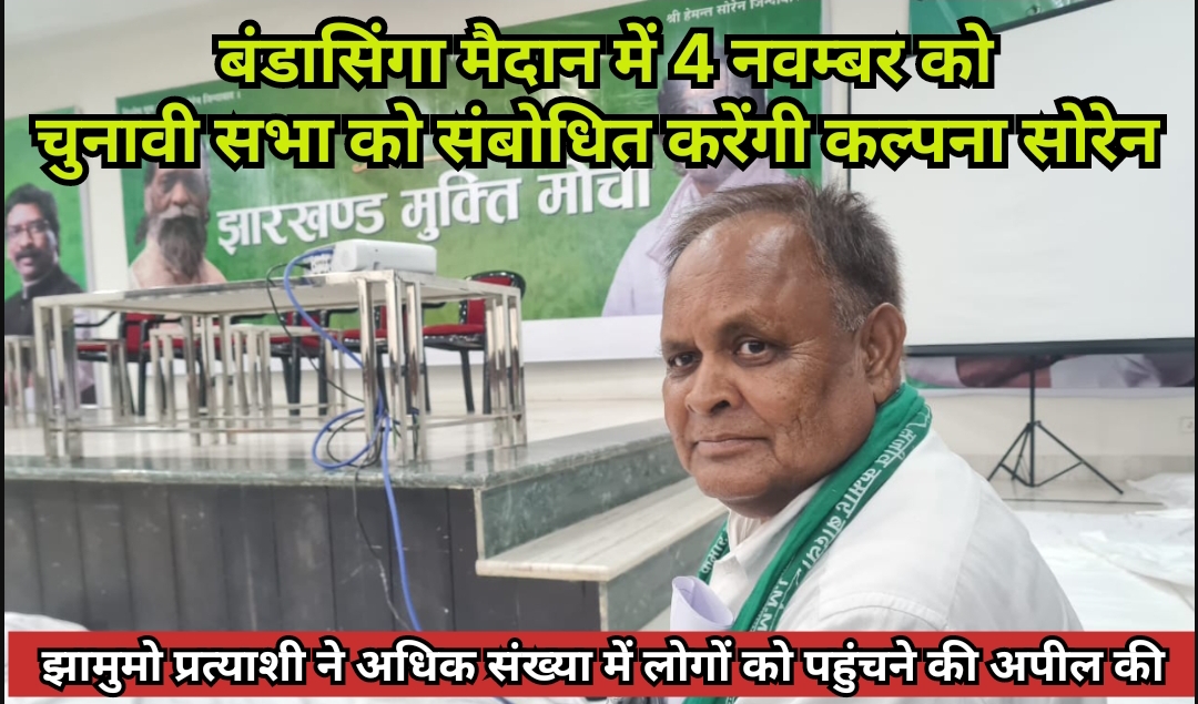 बंडासिंगा मैदान में 4 नवम्बर को चुनावी सभा को संबोधित करेंगी कल्पना सोरेन।