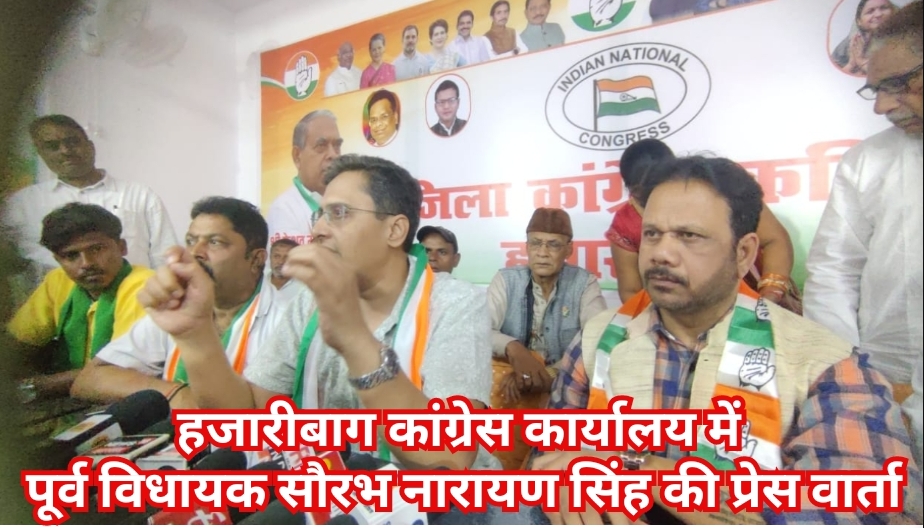 हजारीबाग कांग्रेस कार्यालय में पूर्व विधायक सौरभ नारायण सिंह की प्रेस वार्ता।